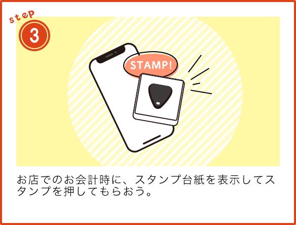 合計金額に関わらず、500円(税込)以上のお会計でデジタルスタンプをお一人様につき1個までです。